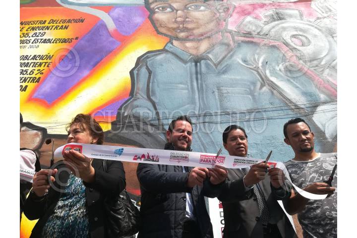CIUDAD DE MÉXICO, 01NOVIEMBRE2017.- El Consejo de la Comunicación y la delegación Cuauhtémoc inauguraron el mural "Pepe y Toño y Ana y Mary", en honor a todos los empresarios emprendedores de la delegación. La obra está sobre el muro de una refaccionaría, ubicada en Calzada de Guadalupe 8, en la colonia ex Hipódromo de Peralvillo. Rodolfo González, Coordinador de Desarrollo Regional de la delegación Cuauhtémoc encabezó el acto. FOTO: MOISÉS PABLO /CUARTOSCURO.COM