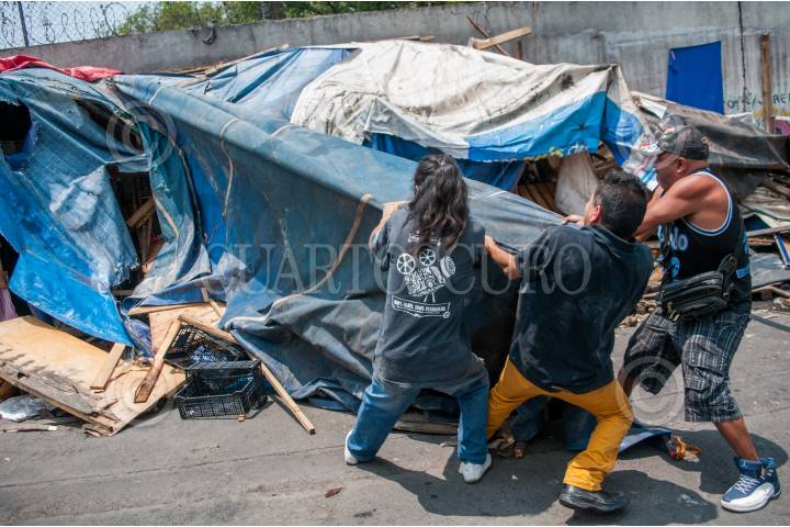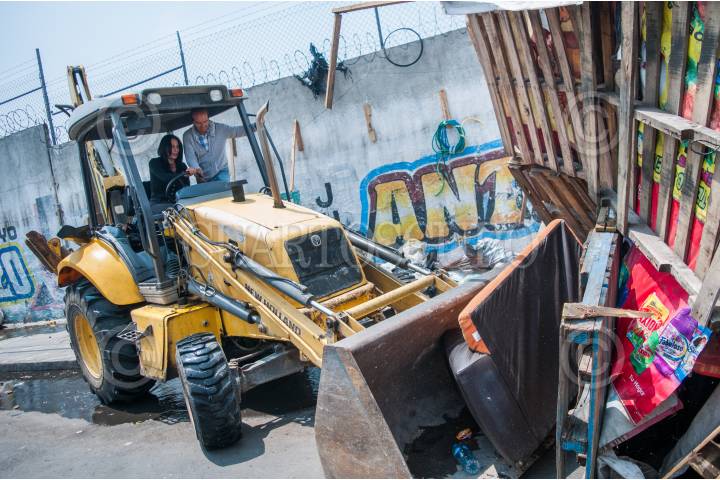 CIUDAD DE MÉXICO, 09MAYO2018.- Personal de la delegación Iztapalapa encabezados por la delegada Dione Anguiano acudieron a la zona del canal de Apatlaco, cerca de Río Churubusco, para limpiar la calle que había sido invadida con casas de madera por más de 30 familias desde hace 3 años. Las autoridades delegacionales llegaron a un acuerdo con las personas para poder quitarlas, serán ayudados con dinero para rentar una vivienda en lo que encuentran un nuevo predio donde vivir. FOTO: DIEGO SIMÓN SÁNCHEZ /CUARTOSCURO.COM