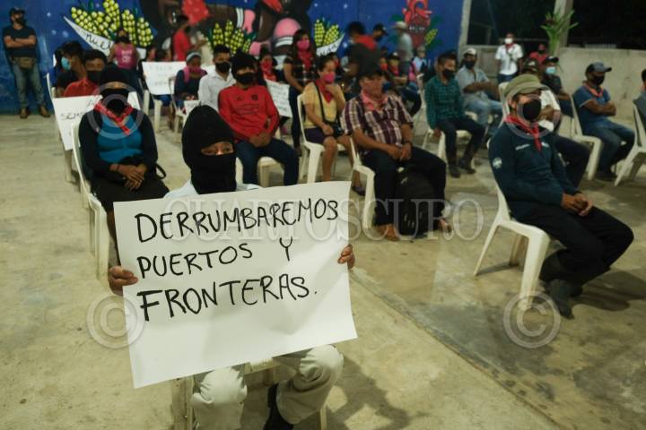 Habitantes del Caracol Roberto Barrios despidieron a la delegación marítima del EZLN que se dirige a Isla Mujeres, en donde zarparán en barco rumbo a Europa.
