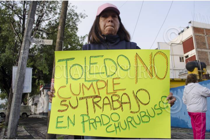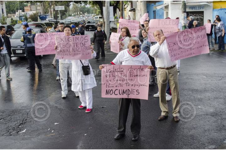 MÉXICO, D.F., 28MAYO2014.- Vecinos de la colonia Prado Churubusco de la delegación Coyoacán cerraron desde temprana hora el acceso vehicular del cruce de la calle Osa Menor con el Eje 2 Oriente La Viga. Demandaron al delegado Mauricio Toledo responda las 150 peticiones que el comité vecinal ha sometido a la delegación con respecto al incremento de robos a transeúntes y a casa habitación. Las peticiones principales de los vecinos son la instalación de 12 cámaras de vigilancia, la limpieza de áreas verdes, la revisión de la red hidráulica y alcantarillado y luminaria en toda la colonia, principalmente sobre Canal Nacional, el cual consideran se encuentra "completamente abandonado y es un foco rojo en la zona". FOTO: MARÍA JOSÉ MARTÍNEZ /CUARTOSCURO.COM