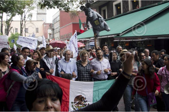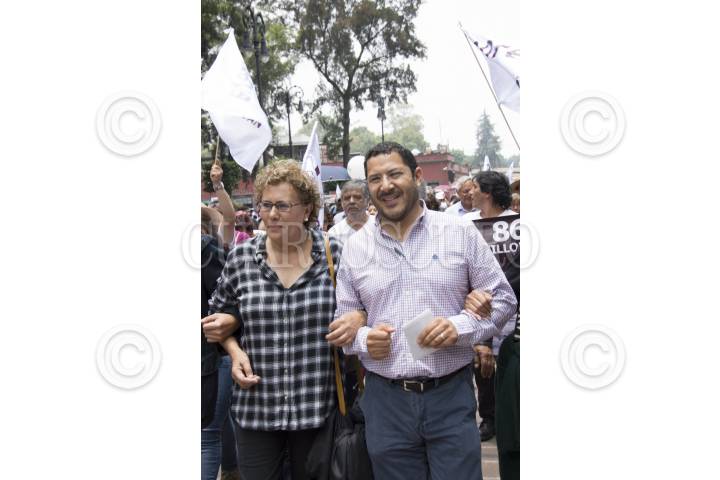MÉXICO, D.F., 27JUNIO2015.-Simpatizantes de Morena realizaron un mitín y una caminata frente al edificio de la delegación Coyoacán por el Parque Hidalgo exigiendo el conteo de votos por el supuesto fraude electoral en esa delegación. Bertha Luján, candidata a delegada, junto con Martí Batres, presidente del partido, expresaron su inconformidad con los resultados de elecciones y exigieron las sanciones correspondientes por 15 atentados durante su campaña política. FOTO: GALO CAÑAS /CUARTOSCURO.COM