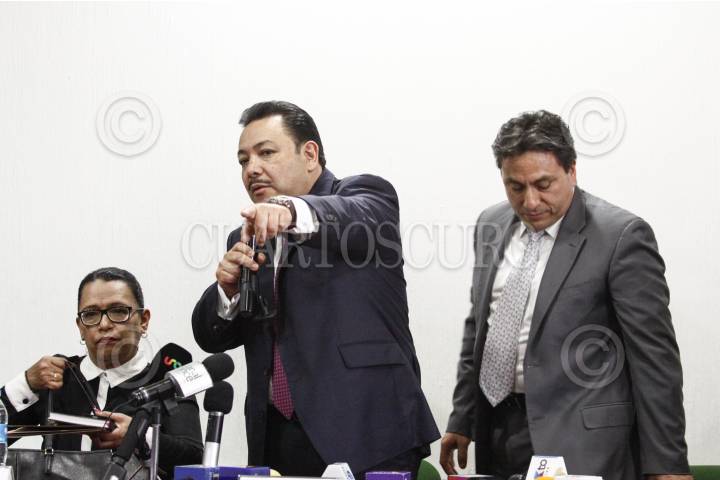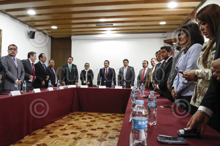 MÉXICO, D.F., 14MAYO2015.- Héctor Serrano, secretario de Gobierno del Distrito Federal y Mario Velazquez, consejero presidente del Instituto Electoral del Distrito Federal acompañados de 10 jefes delegacionales sostuvieron una reunión en donde analizaron temas relacionados con la veda electoral. FOTO: RODOLFO ANGULO /CUARTOSCURO.COM