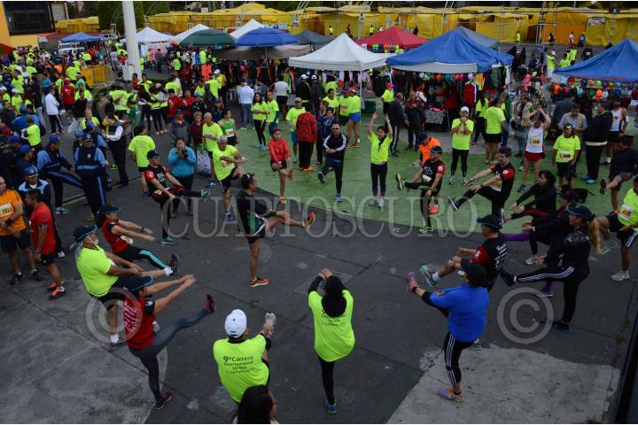 MÉXICO, D.F., 22NOVIEMBRE2015.- Alrededor de 2500 corredores de todas las edades participaron en la Novena Carrera Internacional de 10 kilómetros que organiza la delegación Venustiano Carranza en los alrededores de la colonia Jardín Balbuena. Los participantes comenzaron con el calentamiento desde tempranas horas al ritmo de la zumba y de un trote ligero en la explanada de la delegación. FOTO: GALO CAÑAS /CUARTOSCURO.COM
