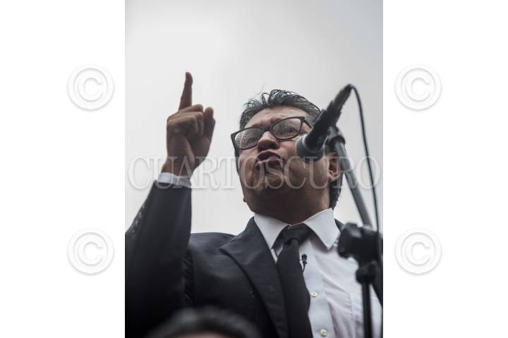 CIUDAD DE MÉXICO, 30AGOSTO2017.- Ricardo Monreal, jefe delegacional de Cuauhtémoc, durante el mitin que encabezó en las insatalaciones de la delegación, donde hizo enfásis en las dudas que tiene acerca de las encuestas que realizó su partido respecto a la candidatura para jefe de gobierno en 2018, y descartó que fuera a renunciar a su militancia en Morena. FOTO: TERCERO DÍAZ /CUARTOSCURO.COM