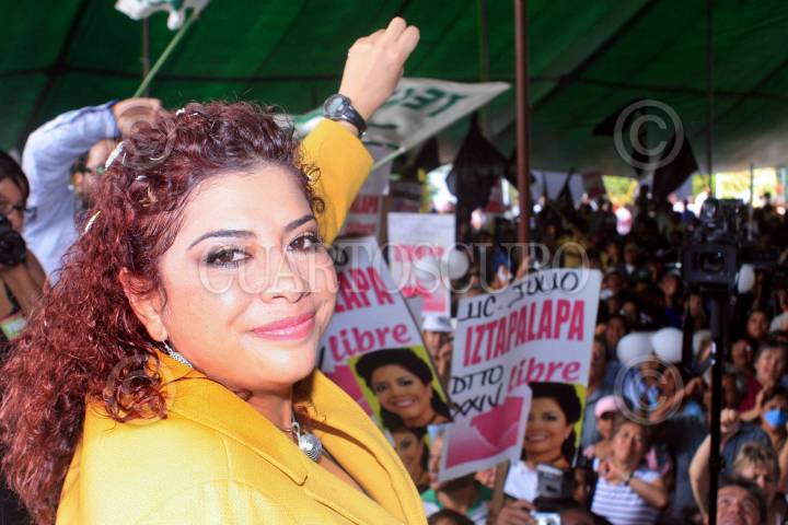 MÉXICO, D.F., 01OCTUBRE2009.- Cientos de vecinos de la delegación Iztapalapa asistieron a un mitin en la Macroplaza de esta demarcación en apoyo a Clara Brugada, directora Jurídica y de Gobierno de la delegación Iztapalapa después de que Rafael Acosta, alias Juanito, le entregó su licencia para ausentarse por 59 días de la jefatura delegacional. FOTO: HERMES QUETZALCOATL/CUARTOSCURO.COM