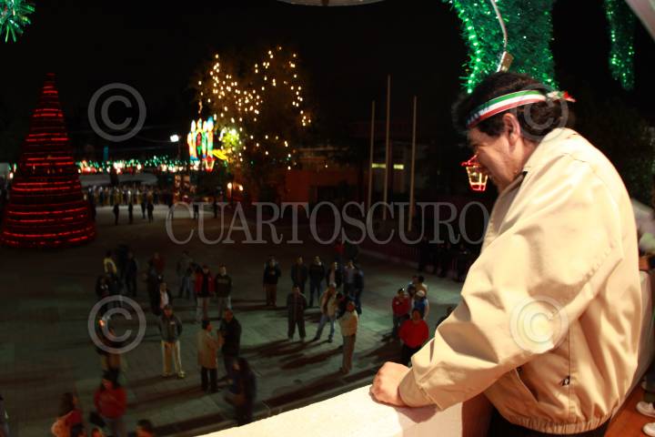 MÉXICO, D.F., 06DICIEMBRE2009.- Rafael Acosta "Juanito" jefe delegacional en Iztapalapa, encendió esta noche el árbol navideño que se encuentra en la explanada delegacional. FOTO: SÁSHENKA GUTIÉRREZ/CUARTOSCURO.COM