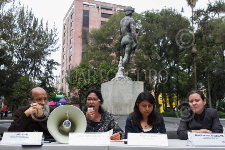 CIUDAD DE MÉXICO, 28SEPTIEMBRE2017.- Jaime Rello, de Movimiento Urbano; Mayela Delgadillo, vecina de la delegación Cuauhtémoc, y Natalia Lara, vecina de la delegación Coyoacán, ofrecieron una conferencia de prensa para hablar sobre el mecanismo de reconstrucción de los inmuebles que quedaron dañados tras el sismo del pasado 19 de septiembre, exigieron que la ciudadanía sea tomada en cuenta. La rueda de prensa fue convocada en la Plaza Río de Janeiro en la colonia Roma. FOTO: MOISÉS PABLO /CUARTOSCURO.COM