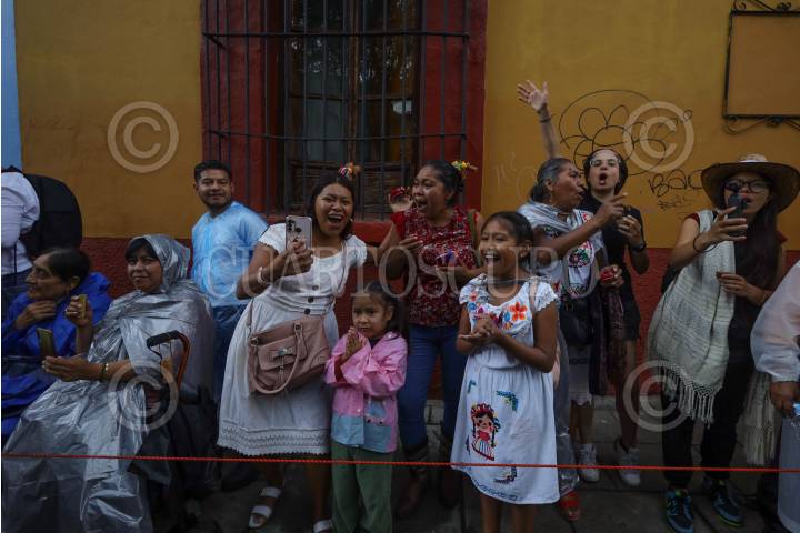 OAXACA DE JUÁREZ, OAXACA, 19JULIO2025.- Gran algarabia y colorido se vivieron en las calles de la capital de Oaxaca con el primer desfile de delegaciones que participarán en las dos presentaciones del Lunes del Cerro como parte de las fiestas de Guelaguetza. 29 delegaciones de las 8 regiones del estado dieron muestra de su cultura, baile, música y tradiciones invitando a vivir la Guelaguetza. FOTO: CAROLINA JIMÉNEZ/CUARTOSCURO.COM