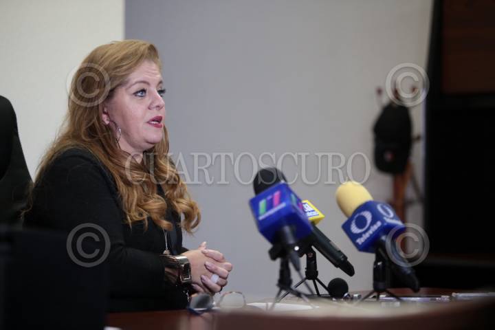 Cristina Cruz, delegada estatal de los Programas para el Desarrollo en la Ciudad de México, durante el anunció de la aplicación en contra del Covid-19 a personas de la tercera de edad en tres alcaldías de la capital.