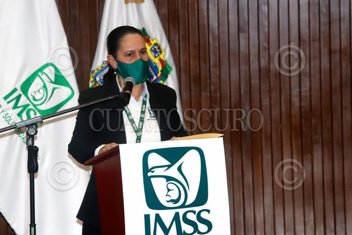 María Aurora Treviño, delegada del IMSS en Puebla, durante su informe.
