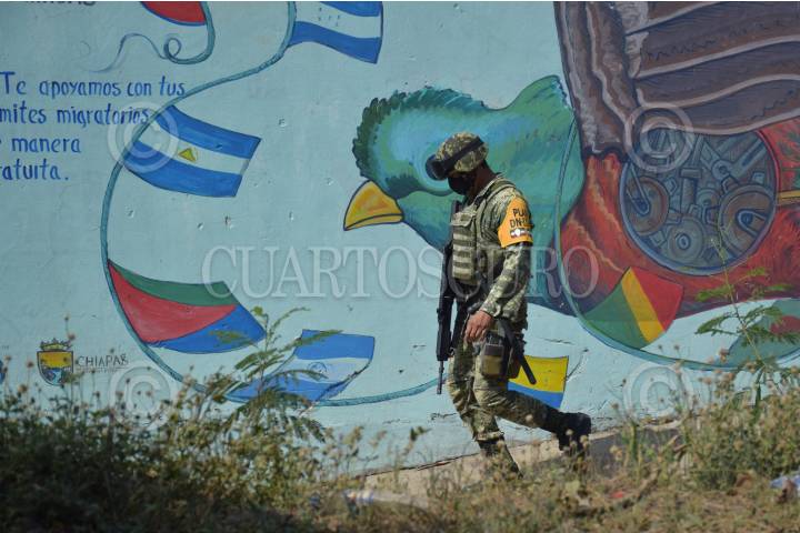 Elementos del Ejército y del Instituto Nacional de Migración, fortalecieron la línea fronteriza sur con objetivo de contener a los migrantes.