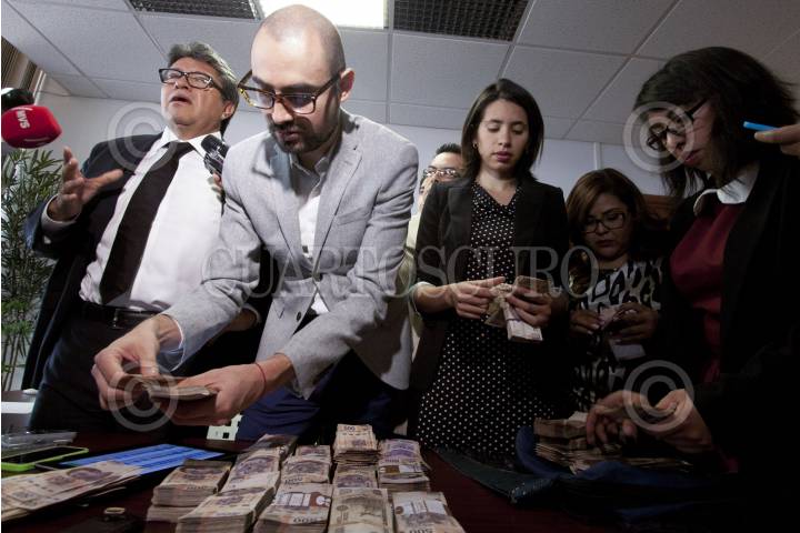 MÉXICO, D.F., 13OCTUBRE2015.- Un sujeto desconocido entregó ayer a Ricardo Monreal, delegado de Cuauhtémoc, una bolsa con un millón 600 mil pesos en su interior. El dinero estaba envuelto en ligas con el nombre de una institución bancaria. El jefe delegacional hizo un llamado a los comerciantes para que denuncien cualquier tipo de extorsión de algún funcionario público que tuviera que ver con la entrega de aquel paquete. FOTO: ARMANDO MONROY /CUARTOSCURO.COM
