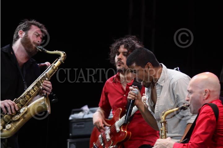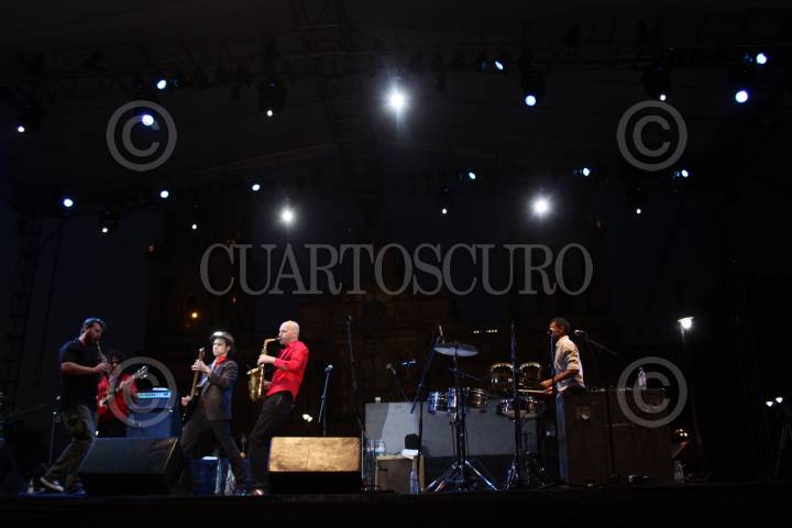 MÉXICO, D.F., 29MARZO2009.- La banda, liderada por el vocalista y percusionista Tomer Yosef ofreció un concierto en la plancha de Zócalo capitalino en donde deleito a miles de asistentes a la clausura del 25 Festival del Centro Histórico. FOTO: SÁSHENKA GUTIÉRREZ/CUARTOSCURO.COM