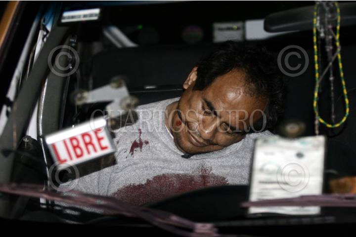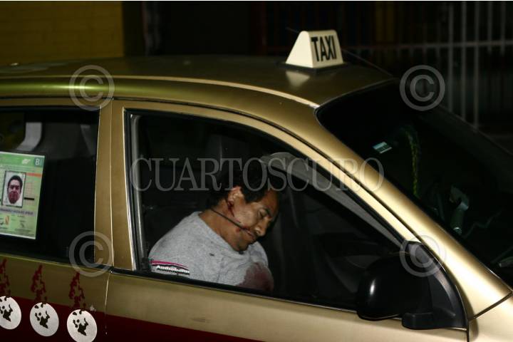 MÉXICO, D.F., 14ABRIL2010.- Benito Ladino Aguilar de aproximadamente 50 años murió al ser ejecutado dentro de su propio taxi, ubicado en el cruce de la avenida Constitución de Apatzingan y Retorno 3 en la colonia Ejército Costitucionalista. FOTO: LUZ ACEVEDO/CUARTOSCURO.COM