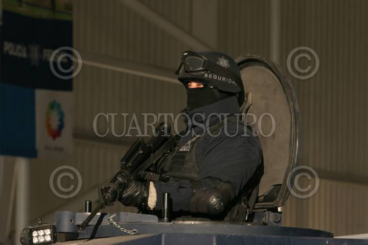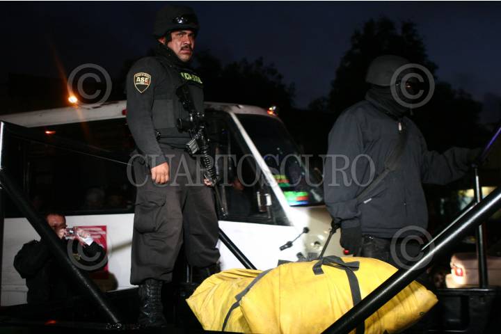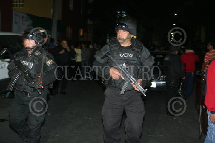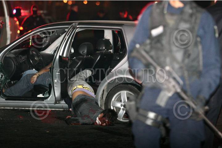 NEZAHUALCOYOTL, ESTADO DE MÉXICO, 15ABRIL2010.- La noche de este miércoles policías federales se enfrentaron con una banda de secuestradores que plagiaron a un presunto narcotraficante de la zona, el saldo es de tres muertos sobre avenida Bordo de Xochiaca frente al centro comercial Ciudad Jardín. FOTO: LUZ ACEVEDO/CUARTOSCURO.COM