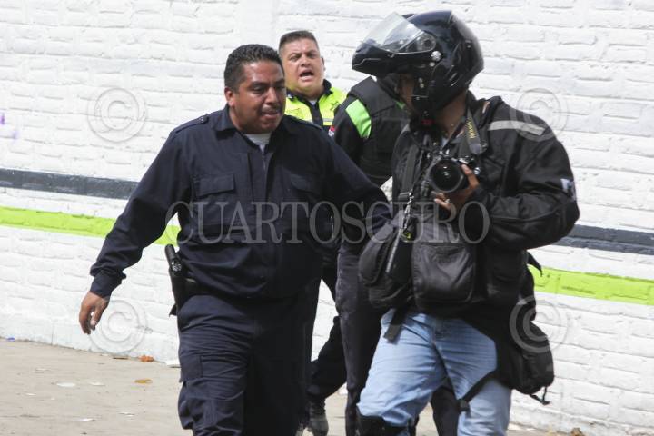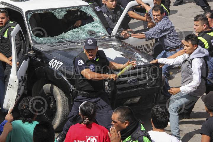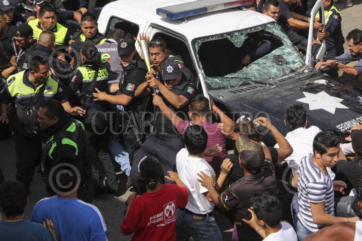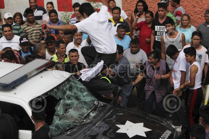 ECATEPEC, EDO. MEX., 14JUNIO2015.- Un fuerte enfrentamiento entre Policías Municipales y pobladores de Santa Maria Tupetlac se registro en este Municipio, debido a que los vecinos detuvieron a tres presuntos delincuentes que robaban a un taxista, en la esquina de Colima y Sinaloa. Los colonos atraparon a los ladrones e intentaron lincharlos, policías municipales llegaron al lugar para rescatarlos. Los vecinos se enfrentaron a los policías en un intento de hacer justicia por su propia mano. FOTO: DIEGO REYES /CUARTOSCURO.COM