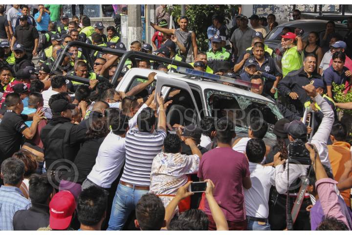 ECATEPEC, EDO. MEX., 14JUNIO2015.- Un fuerte enfrentamiento entre Policías Municipales y pobladores de Santa María Tupetlac se registro en este Municipio, debido a que los vecinos detuvieron a tres presuntos delincuentes que robaban a un taxista, en la esquina de Colima y Sinaloa. Los colonos atraparon a los ladrones e intentaron lincharlos, policías municipales llegaron al lugar para rescatarlos. Los vecinos se enfrentaron a los policías en un intento de hacer justicia por su propia mano. FOTO: DIEGO REYES /CUARTOSCURO.COM