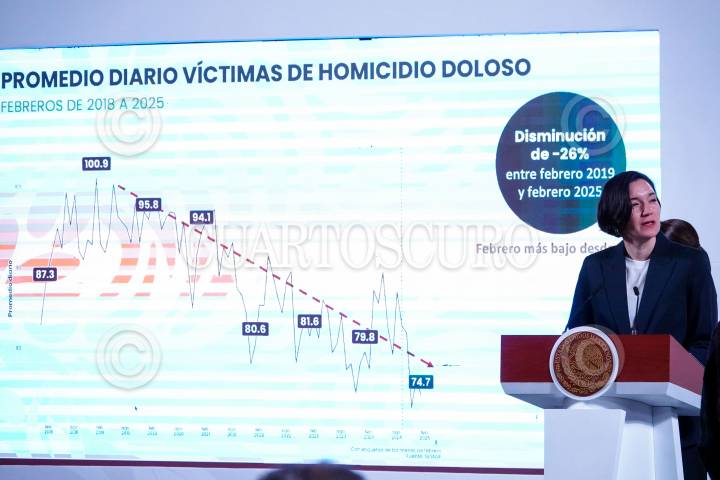 CIUDAD DE MÉXICO, 11MARZO2025.- Omar García Harfuch, secretario de Seguridad Pública y Protección Ciudadana, durante la conferencia “Mañanera del Pueblo” en la que se presentó el informe en materia de seguridad. FOTO: GALO CAÑAS/CUARTOSCURO.COM