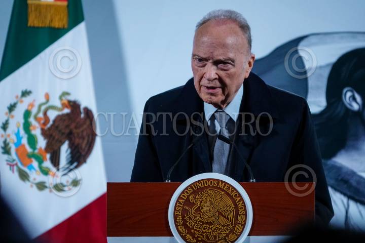 CIUDAD DE MÉXICO, 11MARZO2025.- Alejandro Gertz Manero, Fiscal General de la República, durante la conferencia “Mañanera del Pueblo” en la que se presentó el informe en materia de seguridad. FOTO: GALO CAÑAS/CUARTOSCURO.COM