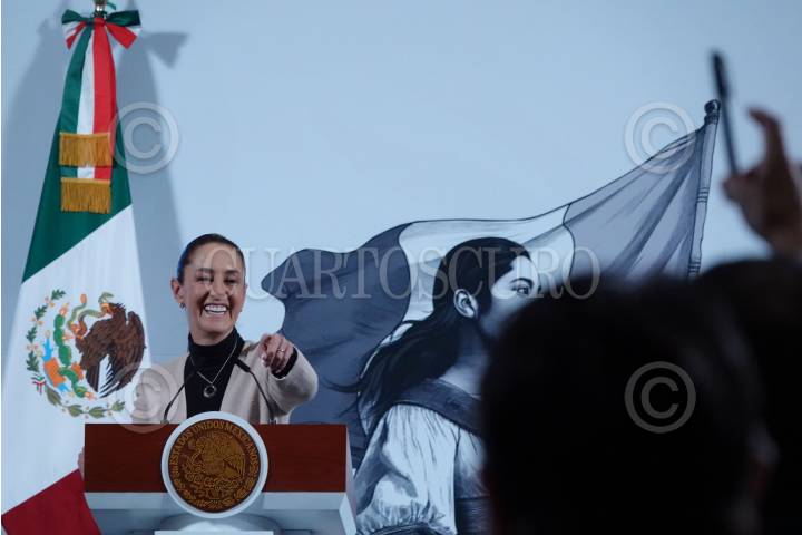 CIUDAD DE MÉXICO, 11MARZO2025.- Claudia Sheinbaum, presidenta de México, encabezó la conferencia “Mañanera del Pueblo” en la que se presentó el informe en materia de seguridad. FOTO: GALO CAÑAS/CUARTOSCURO.COM