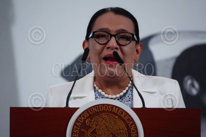 CIUDAD DE MÉXICO, 10JUNIO2025.- Rosa Icela Rodríguez, secretaria de Gobernación, durante la conferencia “Mañanera del Pueblo”. FOTO: GALO CAÑAS/CUARTOSCURO.COM