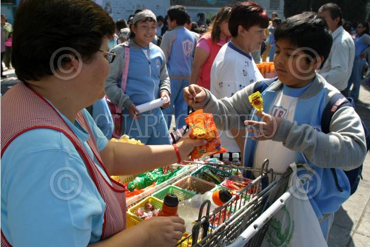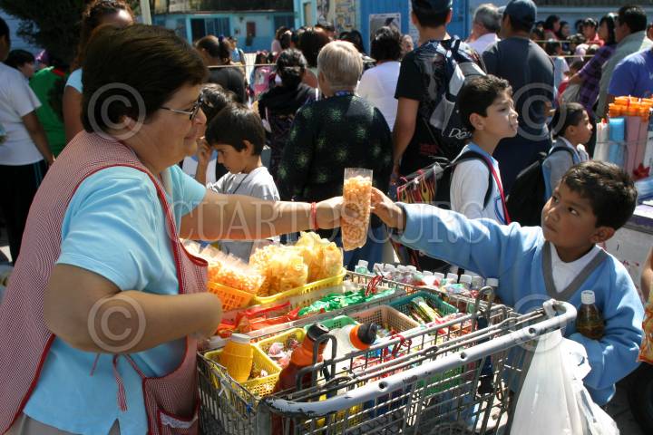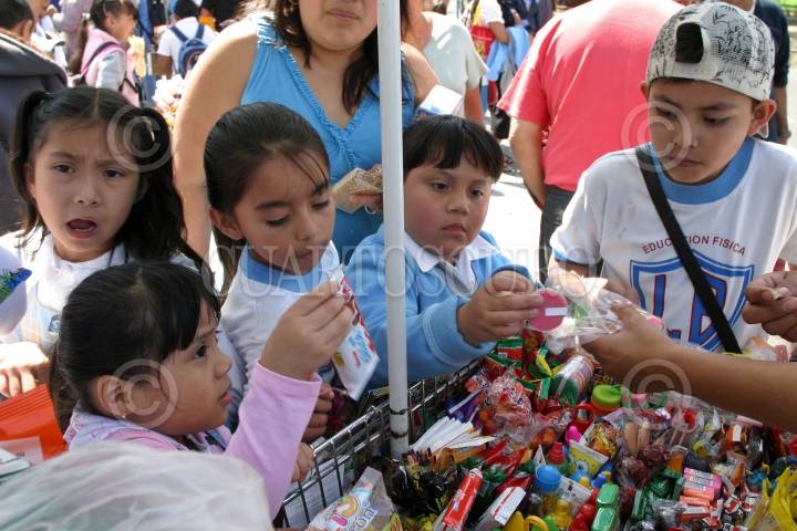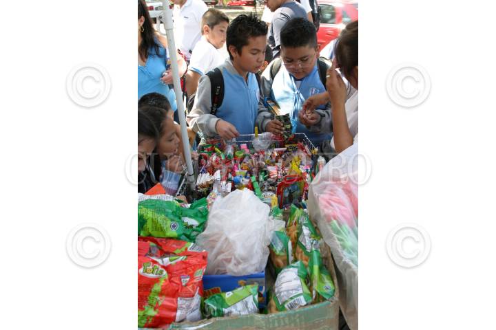 MÉXICO, D.F., 27 ENERO 2010.- Niños de primaria compran dulces, papitas y demás alimentos chatarra a la salida de clases; el consumo de este tipo de alimentos fomenta el sobrepeso y la obesidad que padecen el 70 por ciento de los adultos y el 30 por ciento de los niños en México que son alrededor de cuatro millones y medio de niños de entre cinco y once años. FOTO: RODOLFO ANGULO/CUARTOSCURO.COM