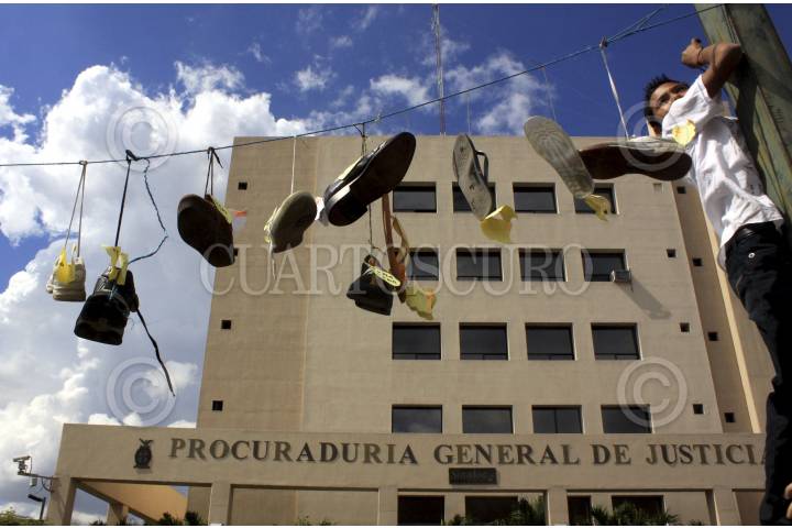 CULIACAN, SINLAOA, 12FEBRERO2012.- Decenas de personas se dieron cita en el parque las riberas para organizar una marcha a la procuraduria general del estado donde se plantaron en un acto llamado "Ponte en los zapatos de los demás" pidiendo justicia por sus familiares y amigos desaparecidos debido a la violencia que se vive en el estado. FOTO: RASHIDE FRIAS/CUARTOSCUIRO.COM