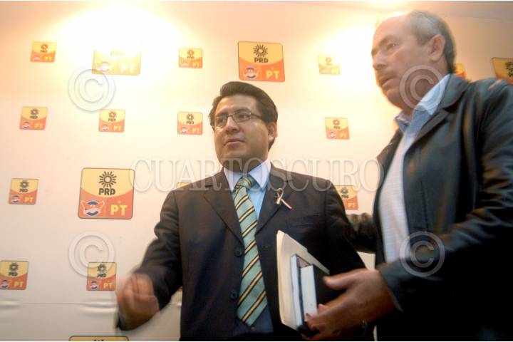 MÉXICO D.F. 25JULIO2006.- Los perredistas, Horacio Duarte y Leonel Cota Montaño, integrantes de la coordinación en defensa del voto, dieron a conocer que demandaran a Luis Carlos Hugalde, presidente consejero del IFE por supuesto fraude electoral, en los comicios celebrados el pasado 2 de Julio. FOTO: Guillermo Perea/CUARTOSCURO.COM