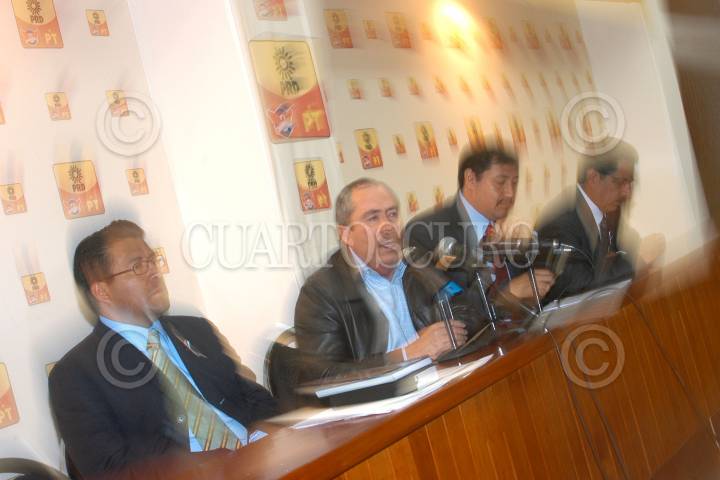 MÉXICO D.F. 25JULIO2006.- Los perredistas, Horacio Duarte, Leonel Cota Montaño, Gerardo Fernández Noroña y Jesús Ortega, integrantes de la coordinación en defensa del voto, dieron a conocer que demandaran a Luis Carlos Hugalde, presidente consejero del IFE por supuesto fraude electoral, en los comicios celebrados el pasado 2 de Julio. FOTO: Guillermo Perea/CUARTOSCURO.COM