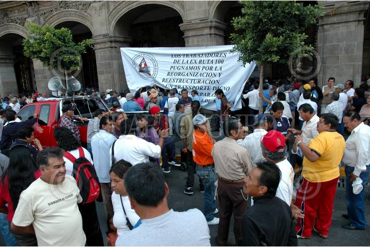 MÉXICO, D.F., 02ABRIL2009.- Trabajadores de la ex Ruta 100 se manifestaron a las afueras del edificio de gobierno del D.F., para exigir se cumplas sus demandas. FOTO: RODOLFO ANGULO/CUARTOSCURO.COM