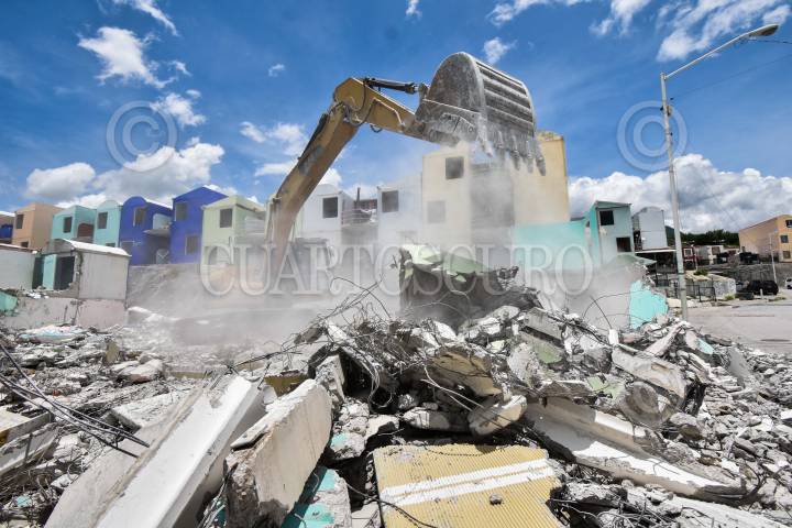 Este martes dieron inicio los trabajos de demolición de los edificios afectados estructuralmente en la Colonia Nuevo Mirador, ubicada al sur de Chilpancingo y que fueron viviendas entregadas en el año 2016, como parte de la reubicación a los afectados por las tormentas Ingrid y Manuel.