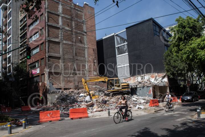 CIUDAD DE MÈXICO, 22ABRIL2018.- A poco más de siete meses del sismo del 19s, continúan las labores de demolición de edificios afectados durante el desastre natural. En la imagen el edificio que sufrió daños durante el terremoto en la calle Amsterdam en la colonia Condesa. FOTO: TERCERO DÍAZ /CUARTOSCURO.COM
