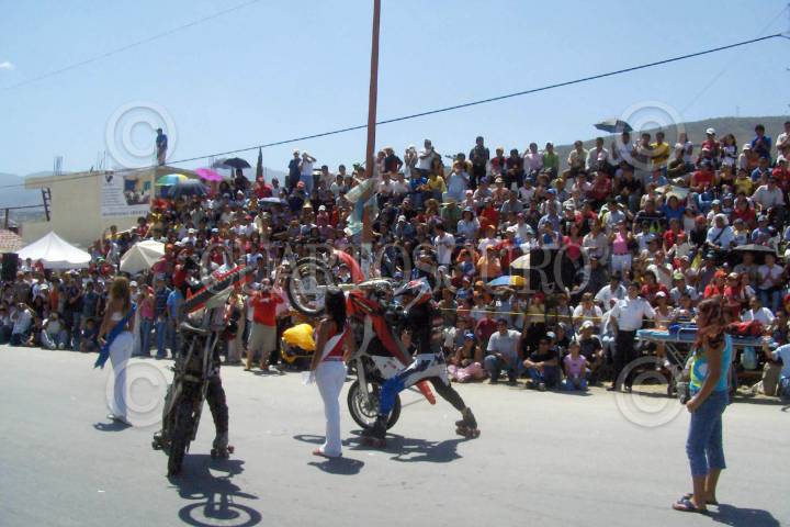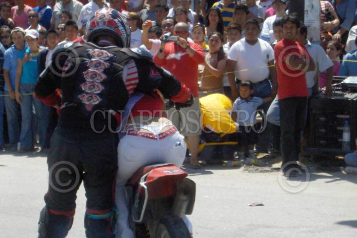 CHILPANCINGO, GUERRERO, 05 MARZO 2006., Presentacion del espectaculo "Festival Internacional de la Acrobacia Sobre Ruedas", se deleito la pupila, con una edecan, cuando esta fue invitada a subir a una motocicleta, para participar en las acrobacias realizadas por Marcelo Gonzalez Riquetti "Motpaka". FOTO: Oscar Alvarado/CUARTOSCURO.COM