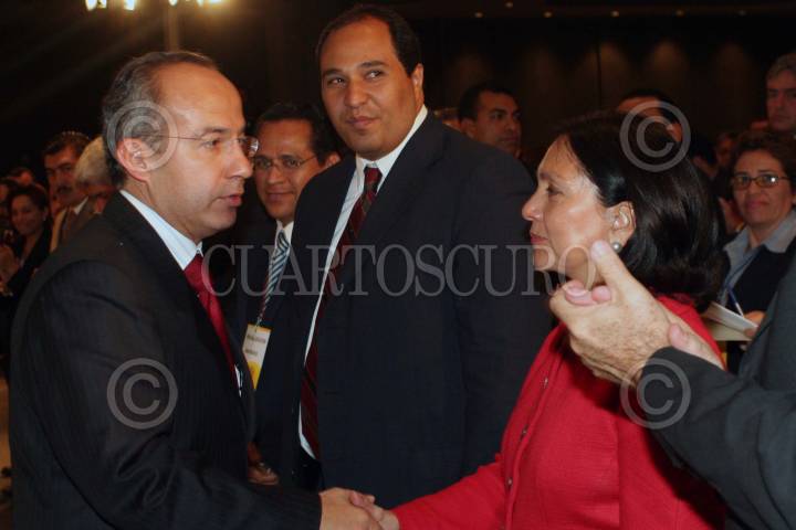 GUADALAJARA, JALISCO 24OCTUBRE2006.- El presidente electo, Felipe Calderón Hinojosa, junto con los gobernadores de Amalia García de Zacatecas y Lazaro Cradenas Batel de Michoacan, durante el arranque de los foros denominados Diálogos. FOTO: ALFREDO GUERRERO/CUARTOSCURO.COM