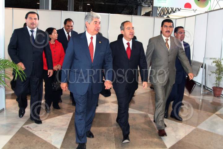 GUADALAJARA, JALISCO 24OCTUBRE2006.- El presidente electo, Felipe Calderón Hinojosa, dió el banderazo de arranque a los foros denominados Diálogos, acompañado de gobernadores de diferentes estados de la república. FOTO: ALFREDO GURRERO/CUARTOSCURO.COM