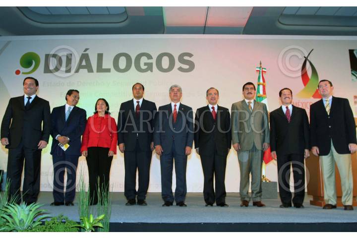 GUADALAJARA, JALISCO 24OCTUBRE2006.- El presidente electo, Felipe Calderón Hinojosa, dio el banderazo de arranque a los foros denominados Diálogos, acompañado de gobernadores de diferentes estados de la república. FOTO: ALFREDO GURRERO/CUARTOSCURO.COM