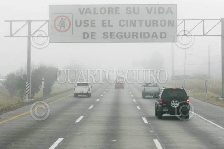 QUERÉTARO, QUERÉTARO, 014ENERO2010.- Aspectos de la carretera 57, Querétaro-Méxco, donde tras la entrada del frente frio numero 23 se presenta una densa neblina. FOTO: DEMIAN CHÁVEZ/CUARTOSCURO.COM