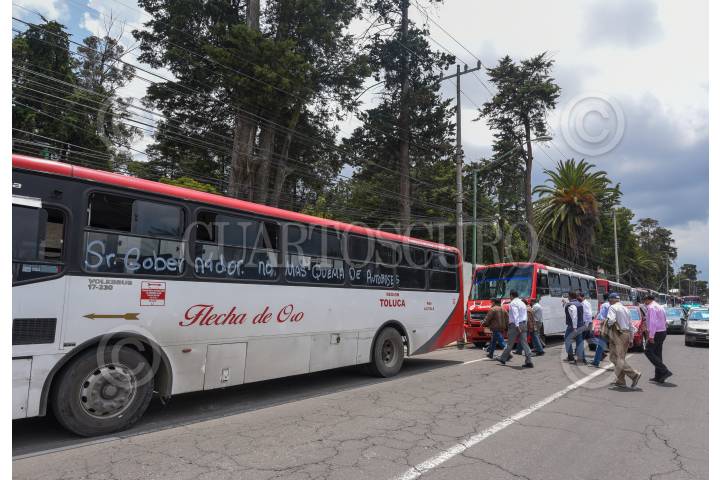 Transportistas de 29 empresas del Valle de Toluca denunciaron ser extorsionados por un grupo criminal y al no pagar les han quemado al menos 10 unidades.