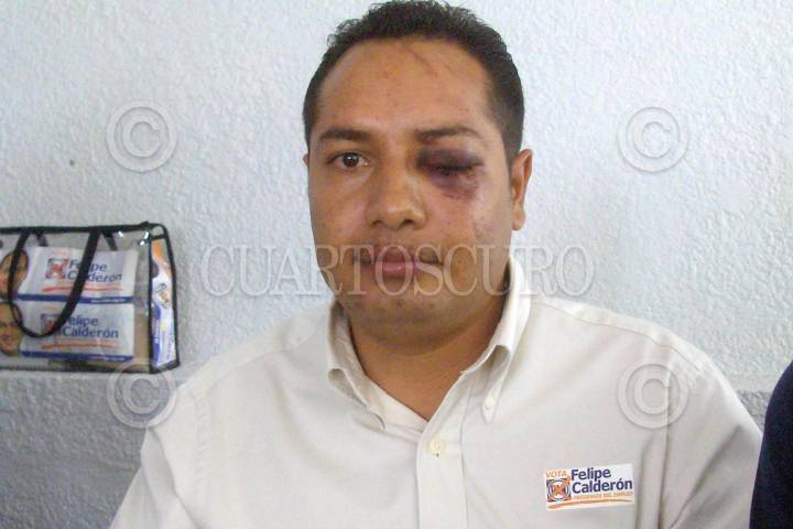 CHILPANCINGO, GUERRERO 23MAYO2006.- Yuri Doroteo Tovar coordinador juvenil de la campaña del candidato a diputado federal por el PAN en el distrito 08 Carlos Gallegos, en conferencia de prensa, denunció la agresión a golpes que sufrió por parte de simpatizantes del PRD cuando colocaba propaganda electoral de Acción Nacional en el municipio de Copala el sábado pasado. FOTO: Oscar Alvarado/CUARTOSCURO.COM