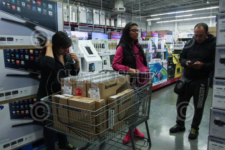 MÉXICO, D.F., 13NOVIEMBRE2015.- Inició la quinta edición del Buen Fin en el país, una versión mexicana del Black Friday en Estados Unidos. Debido al incremento del dólar la estimación de ganancia, es mucho menor que en años anteriores. En su mayoría, los compradores acudieron, únicamente para adquirir pantallas inteligentes de alta definición, ya que el 31 de diciembre es la fecha límite para que México entre a la era digital con el apagón analógico, de acuerdo con la reforma en telecomunicaciones aprobada por el Senado de la República. FOTO: ISABEL MATEOS /CUARTOSCURO.COM