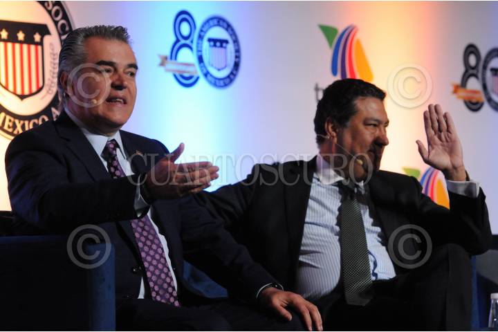 Panel de exposición entre el titular del CCE, Francisco Cervantes y el vicepresidente de Constellation Brand, Julio Portales.