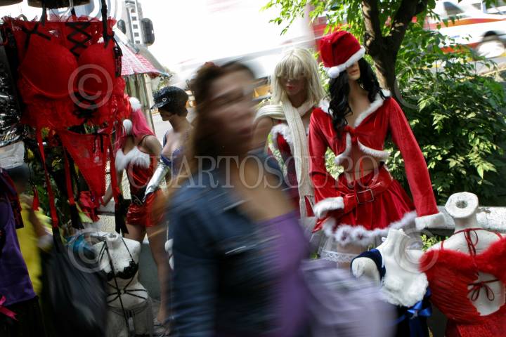 MÉXICO, D.F., 28DICIEMBRE2009.- La venta de ropa interior de color rojo, para el amor y amarillo para el dinero, es una costumbre tradicional en los festejos de fin de año; las personas usan estas prendas para recibir el año nuevo según la tradición dependiendo del color de la prenda sera la fortuna que la persona que lo use recibirá en el año venidero. FOTO: RODOLFO ANGULO/CUARTOSCURO.COM