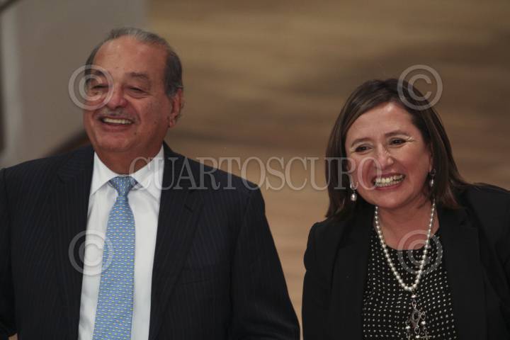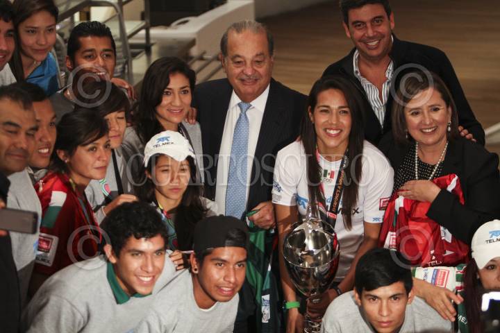MÉXICO, D.F., 22SEPTIEMBRE2015.- Carlos Slim y Xochitl Gálvez una reunión privada con los participantes de la copa Telmex 2015 un torneo de deportes organizado por fundación Telmex FOTO: ISABEL MATEOS /CUARTOSCURO.COM
