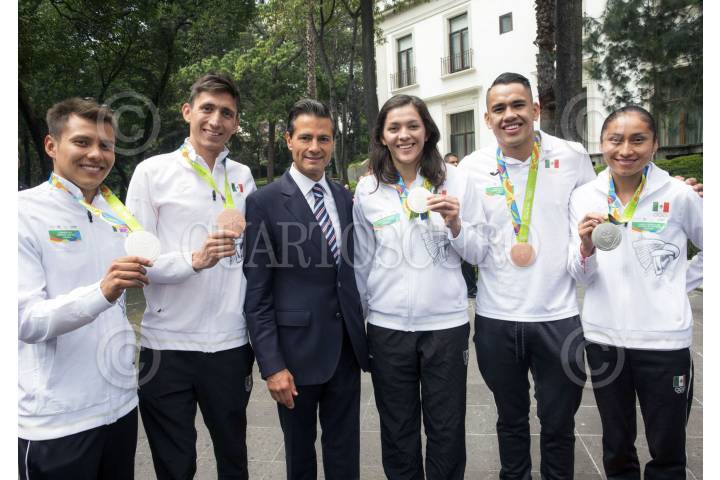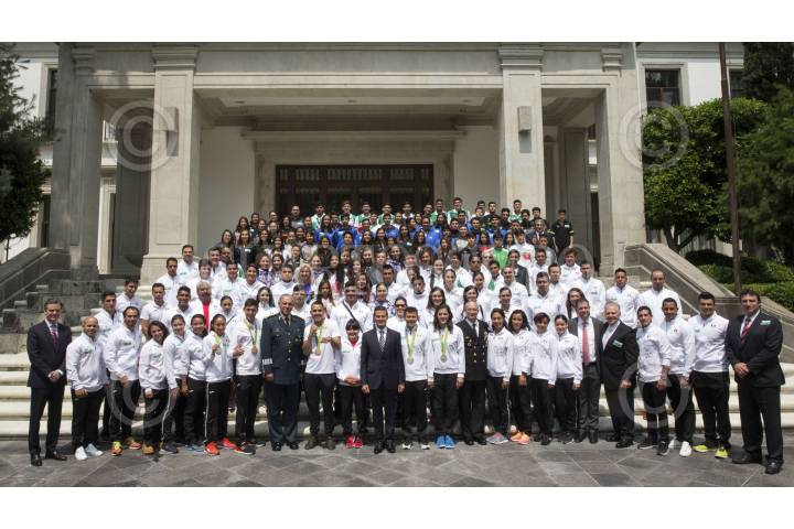 CIUDAD DE MÉXICO, 26AGOSTO2016.- El Presidente Enrique Peña Nieto, se reunió hoy con los deportistas que integraron la delegación mexicana que participó en los Juegos Olímpicos de Río de Janeiro 2016 y felicitó especialmente a los deportistas mexicanos que obtuvieron medalla, a quienes les expresó su reconocimiento por el esfuerzo, la entrega, el empeño y el coraje que demostraron en esta justa olímpica y durante el proceso para llegar a ella. FOTO: PRESIDENCIA /CUARTOSCURO.COM