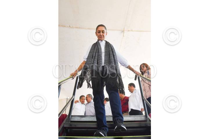Sandra Cuevas, alcaldesa de Cuauhtémoc, durante su llegada al Deportivo Guelatao, en el que ofreció un discurso.