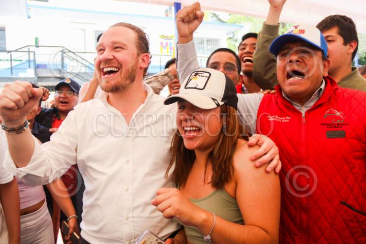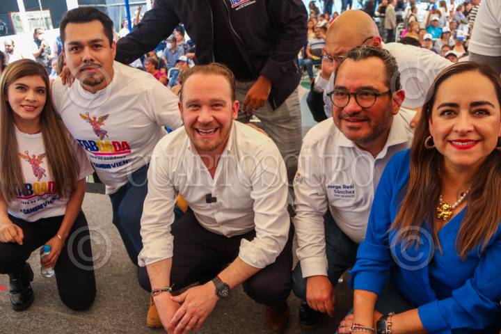 Sandra Cuevas, alcaldesa de Cuauhtémoc, en compañía de los alcaldes: Mauricio Tabe (Miguel Hidalgo); Lía Limón (Álvaro Obregón), Santiago Taboada (Benito Juárez), y Margarita Zaldaña,(Azcapotzalco), en las instalaciones del Deportivo Guelatao.