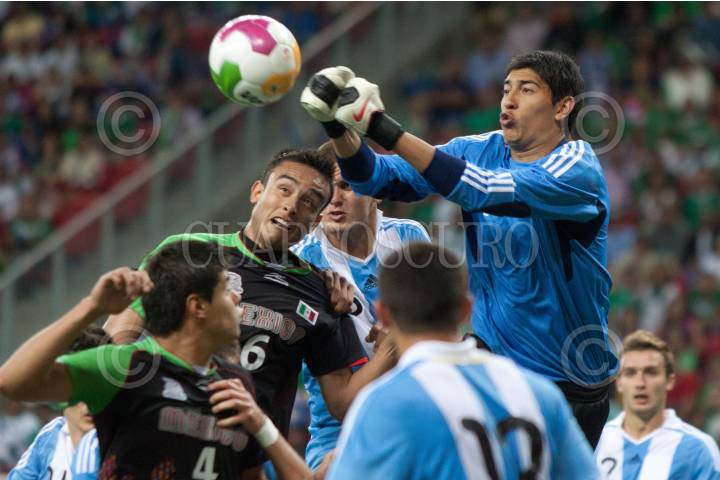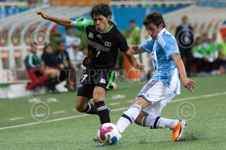 GUADALAJARA, JALISCO, 28OCTUBRE2011.- México se enfrenta a la escuadra Argentina durante el partido final de futbol de los Juegos Panamericanos donde el marcador al medio tiempo es de cero goles. FOTO: IVÁN STEPHENS/CUARTOSCURO.COM