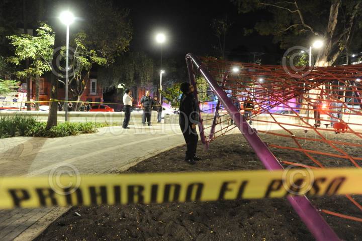 CIUDAD DE MÉXICO., 07DICIEMBRE2016.- El cuerpo sin vida de un hombre de aproximadamente 40 años, fue hallado colgado de un juego infantil, al interior de un parque ubicado en Álvaro Obregón y Morelia en la colonia Roma. Policías acordonaron el lugar hasta que fue retirado el cadáver de esta persona. FOTO: LUIS CARBAYO /CUARTOSCURO.COM