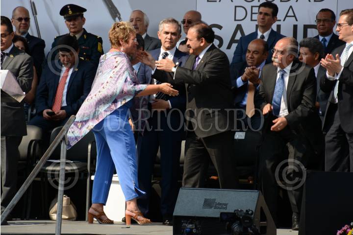 CIUDAD DE MÉXICO, 06ABRIL2017 .- Miguel Ángel Mancera, Jefe de Gobierno; Armando Ahued Ortega, secretario de Salud de la capital, y José Meljem Moctezuma, subsecretario de integración y desarrollo del sector salud; Maureen Birmingham, representante de la Organización Panamericana de la Salud (OPS) y Organización Mundial de la Salud (OMS), participaron en el "Dìa de la Salud", realizado en el Zócalo. Ahí señalaron la importancia de detectar las enfermedades de salud mental, especialmente la depresión, ya que se han detectado más de 329 mil casos en la Ciudad de México. FOTO: MARIO JASSO /CUARTOSCURO.COM