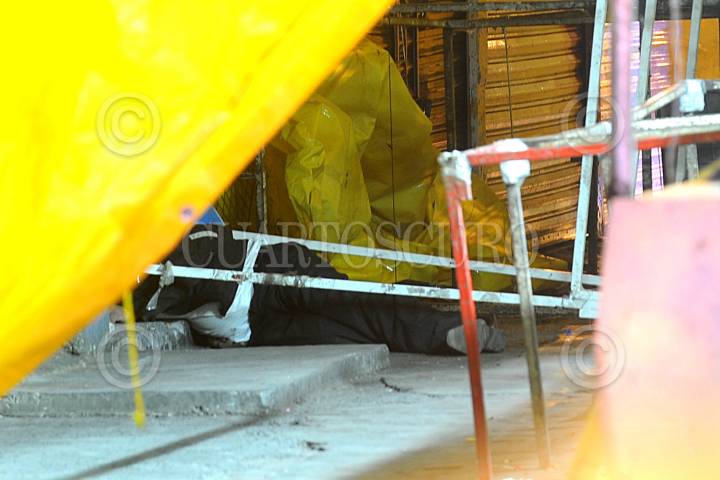 CIUDAD DE MÉXICO, 24ABRIL2017.- Un hombre de aproximadamente 40 años decidió quitarse la vida colgándose de un puesto tubular, ubicado en Calzada Zaragoza a la altura del Metro Moctezuma. En el afán de los policías por evitar la labor periodística dejaron caer el cuerpo al suelo, esto al estar manipulando lonas para evitar que los reporteros vieran. FOTO: LUIS CARBAYO /CUARTOSCURO.COM
